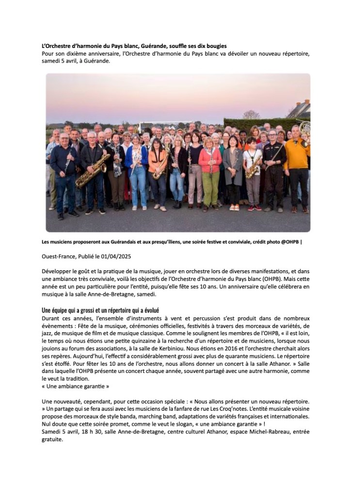 Quelques articles sur l’Orchestre d’Harmonie du Pays Blanc